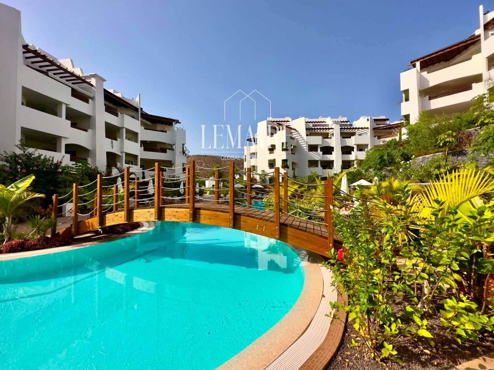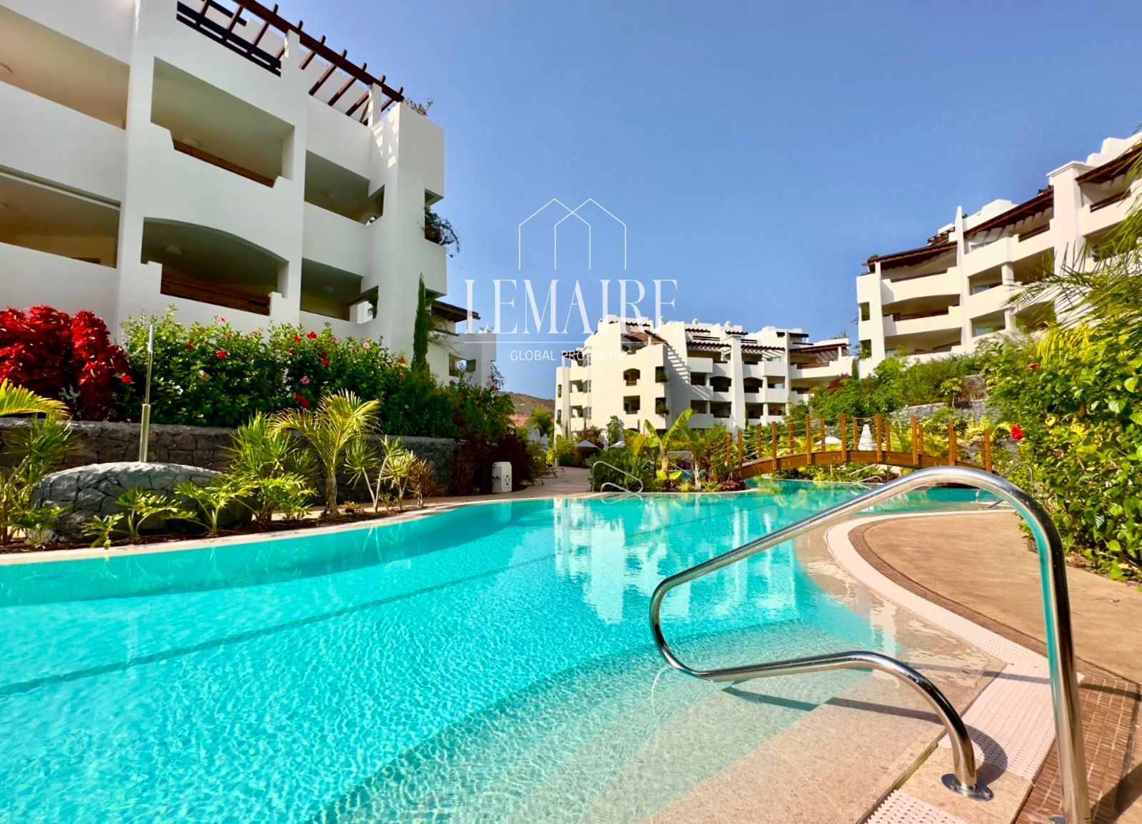 Lemaire Global Properties presenta este sofisticado apartamento ubicado en el prestigioso y altamente demandado complejo residencial Jardines de los Menceyes, en la exclusiva localidad costera de Palm-Mar, uno de los enclaves residenciales más valorados del sur de Tenerife.